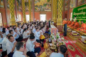 ម្ចាស់វេនទាំងអស់មានចិត្តជ្រះថ្លារួមគ្នានាំយកនូវ បច្ច័យ និង ទេយ្យទាន វេរប្រគេនព្រះសង្ឃ ព្រមទាំងធ្វើពិធីរាប់បាត្រ ទៅតាមគន្លងប្រពៃណីព្រះពុទ្ធសាសនា ដើម្បីទុកជាកុសលរៀងៗខ្លួនផង និងឧទ្ទិសកុសលផលបុណ្យ ដែលបានកើតឡើង ពីកម្លាំងសទ្ធាជ្រះថ្លា ជូនដល់ វិញ្ញាណក្ខន្ធ ចាស់ព្រឹទ្ធាចារ្យ ដែលបានតម្កល់អដ្ឋិធាតុនៅក្នងទីវត្តអារាមមួយនេះផង ព្រមទាំង បុព្វការីជន មានមាតា បិតាជីដូនជីតា ញាតិការទាំង៧សណ្តាន ព្រមទាំងឧទ្ទិសកុសលជូនដល់វិញ្ញាណក្ខន្ធ វរៈកងទ័ពពលី លើសមរភូមិ ក្នុងពេលបំពេញបេសកកម្ម ការរពារបូរណភាពទឹកដី និងនាយទាហាន នាយទាហានរង ពលទាហាននៃ កងរាជអាវុធហត្ថ រាជធានីភ្នំពេញ ដែលបានពលី មរណៈក្នុងរយៈកាលកន្លងមក៕